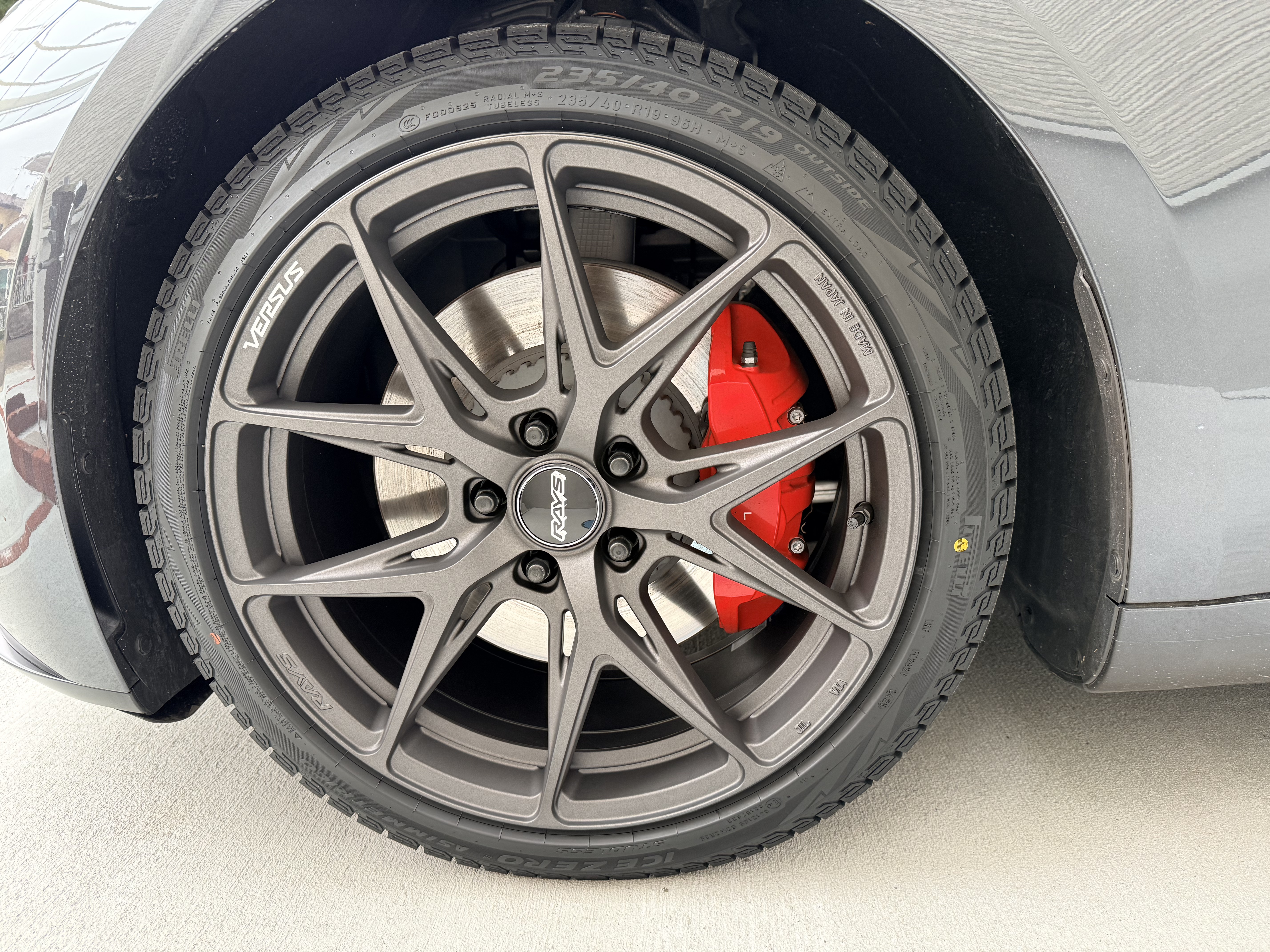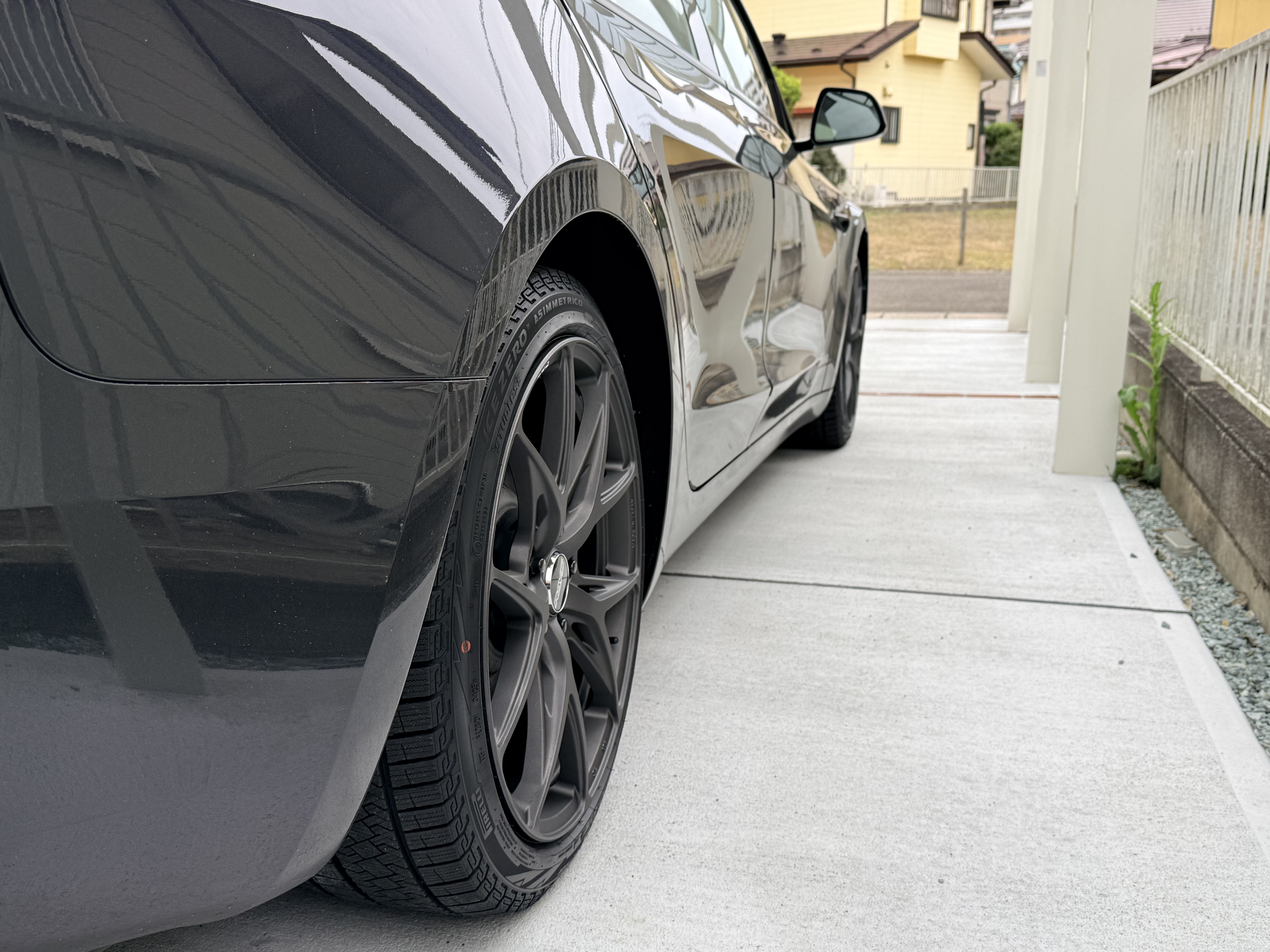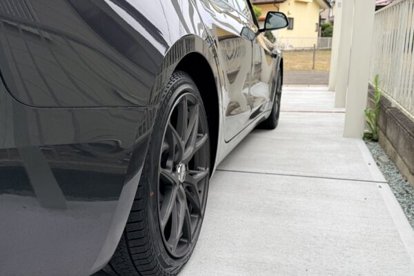 しかし、19インチのオフセット+45にすることで、将来的にモデルYロングレンジ等に乗り換えた場合もそのままホイールを流用できる事と、他社でも適合車種が多く、かつRAYSブランドのホイールにすることで不要になった際も売却もしやすいだろうという狙いでこのホイールを選択しました。