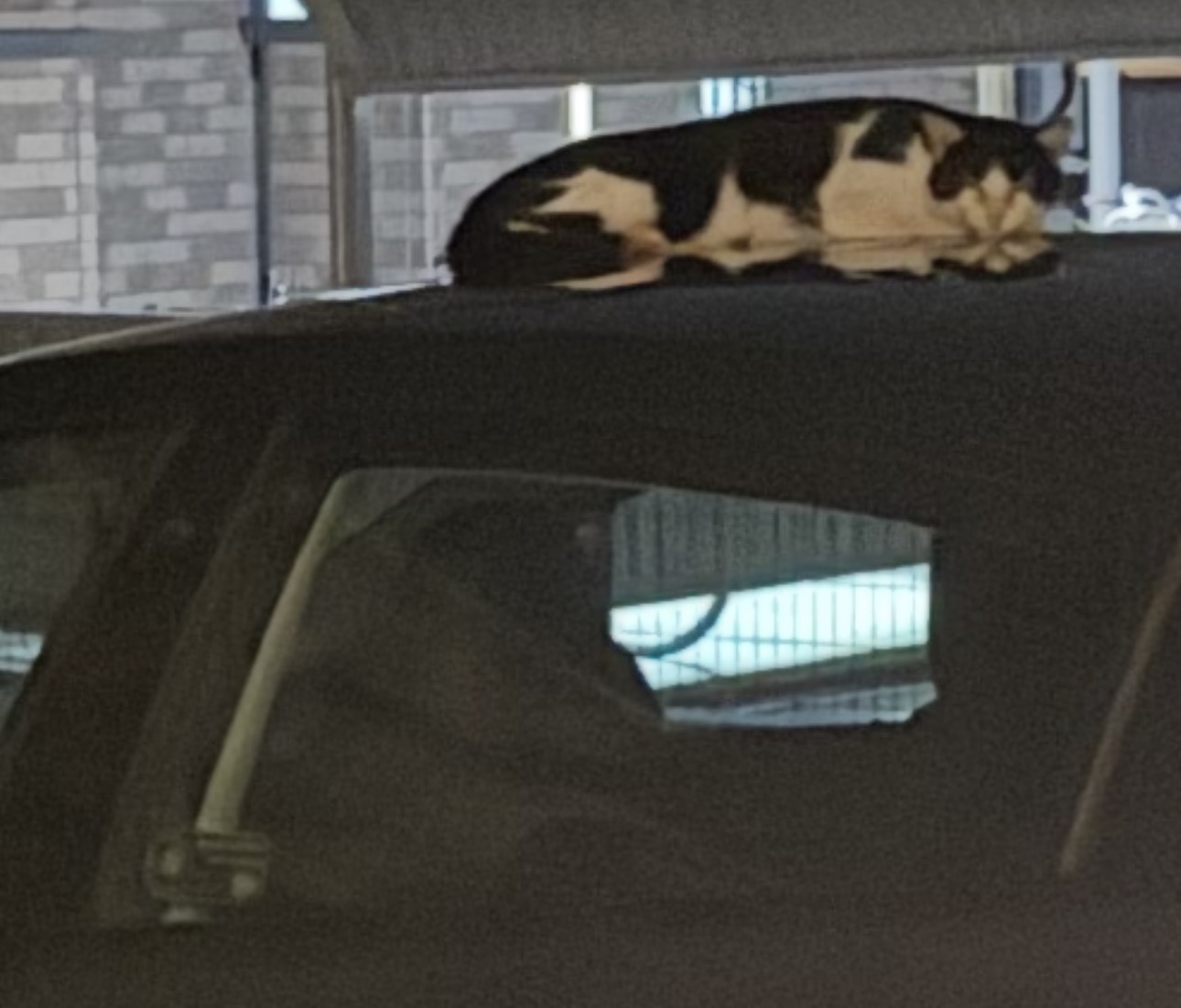 全く以て雑談以上でも以下でも無いのですが、5-10日に一度くらい、夜中に野良猫がTeslaを寝床にしているようです。