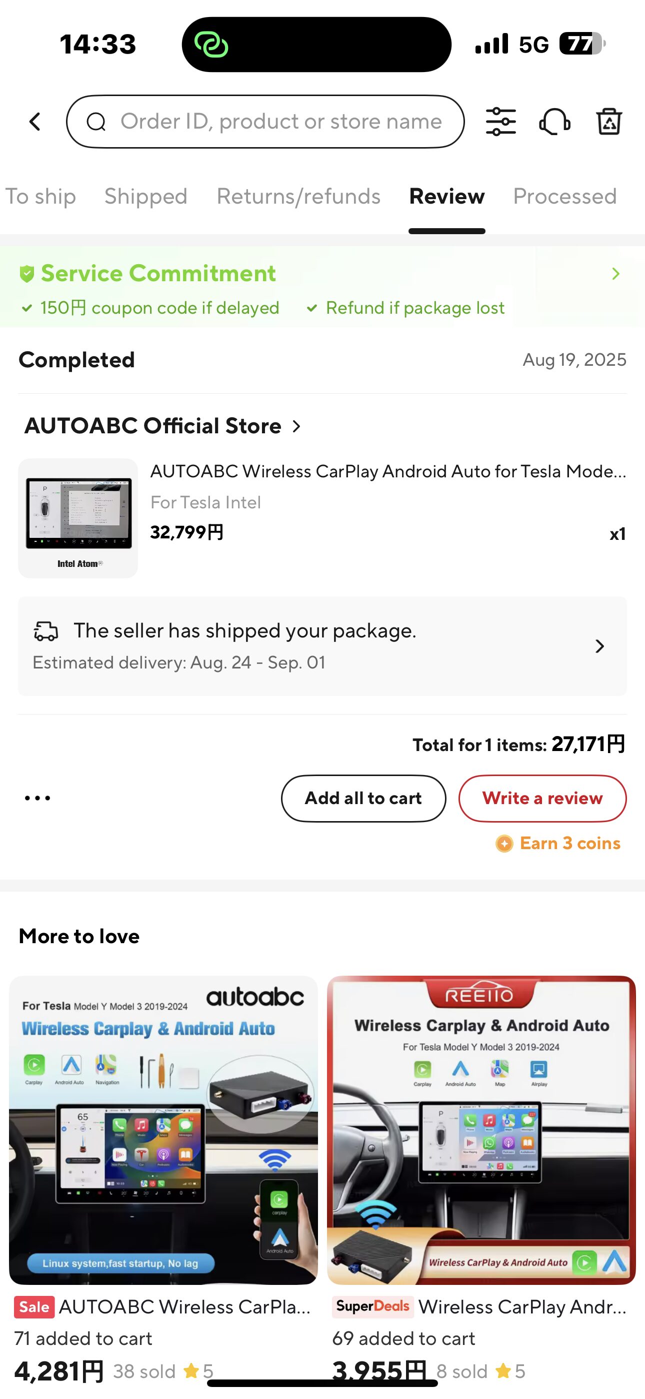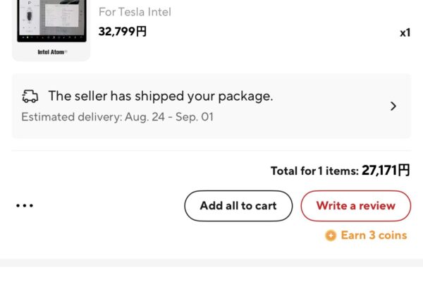 CarPlay/AndroidAutoを使用可能にするサードパーティ製品がありますよね。特に、テスラの画面に出力する配線に割り込ませる方式が安定しているようです。昔は8万円以上していましたが、最近はAliExpressで探せばAUTOABC製のものがセール時のクーポンなど最安で27,000円ぐらいで購入できるようでして、私はついに我慢できずに購入しました!安くなったナァもう…