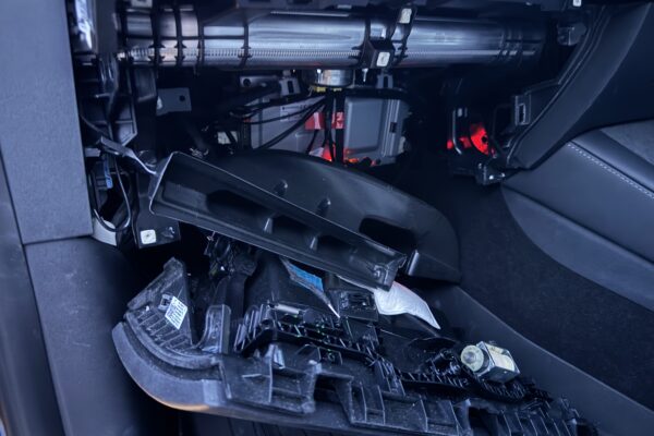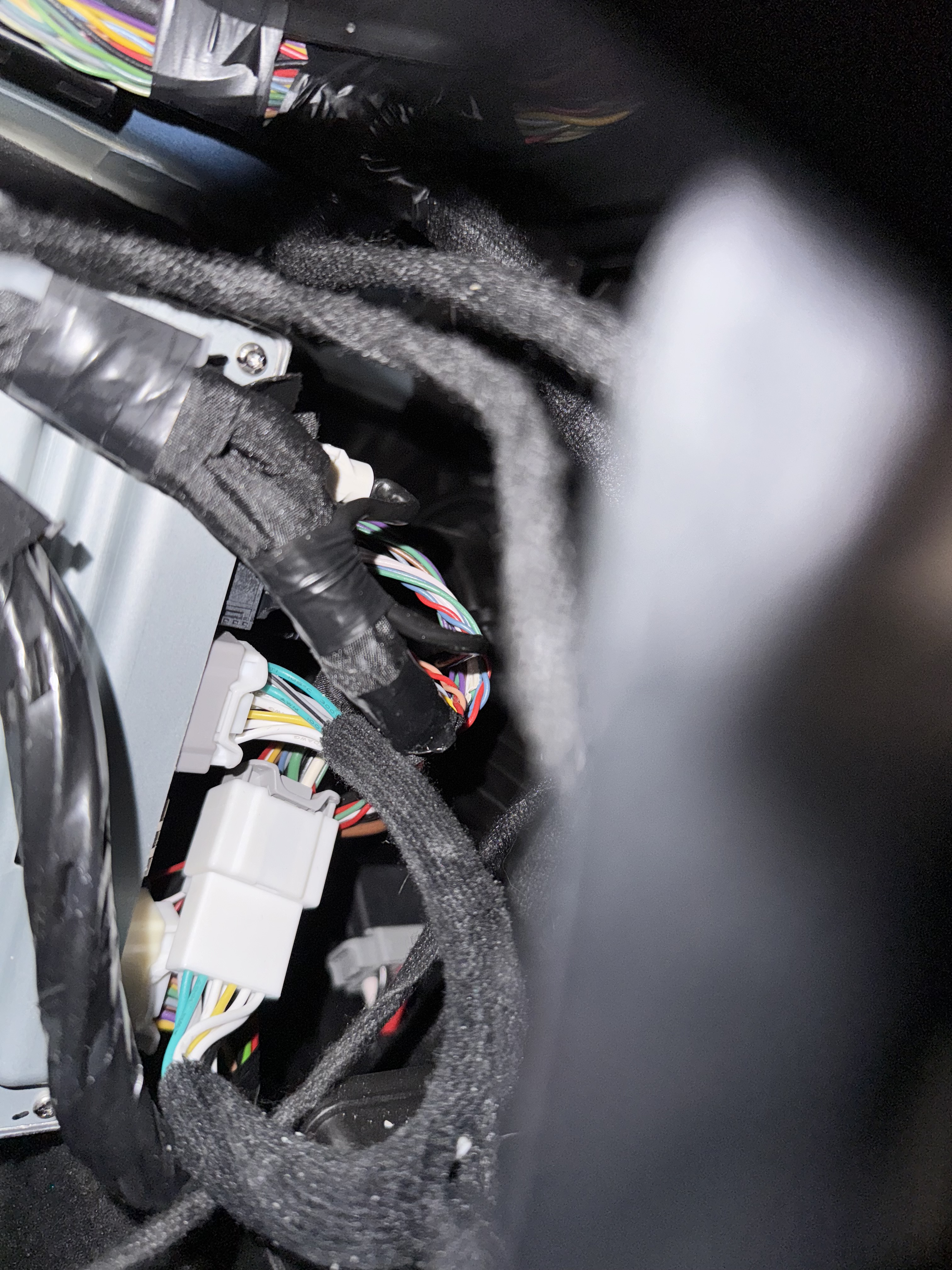 右ハンドル車のIntel Atomだと、やはり、助手席足元のフタだけでなく、グローブボックスと空調ダクト2つの取り外しも必要ですね。ここまでやると、手が入らなくて課題だったMCUの灰色コネクターをなんとか抜き差しできるようになりました。