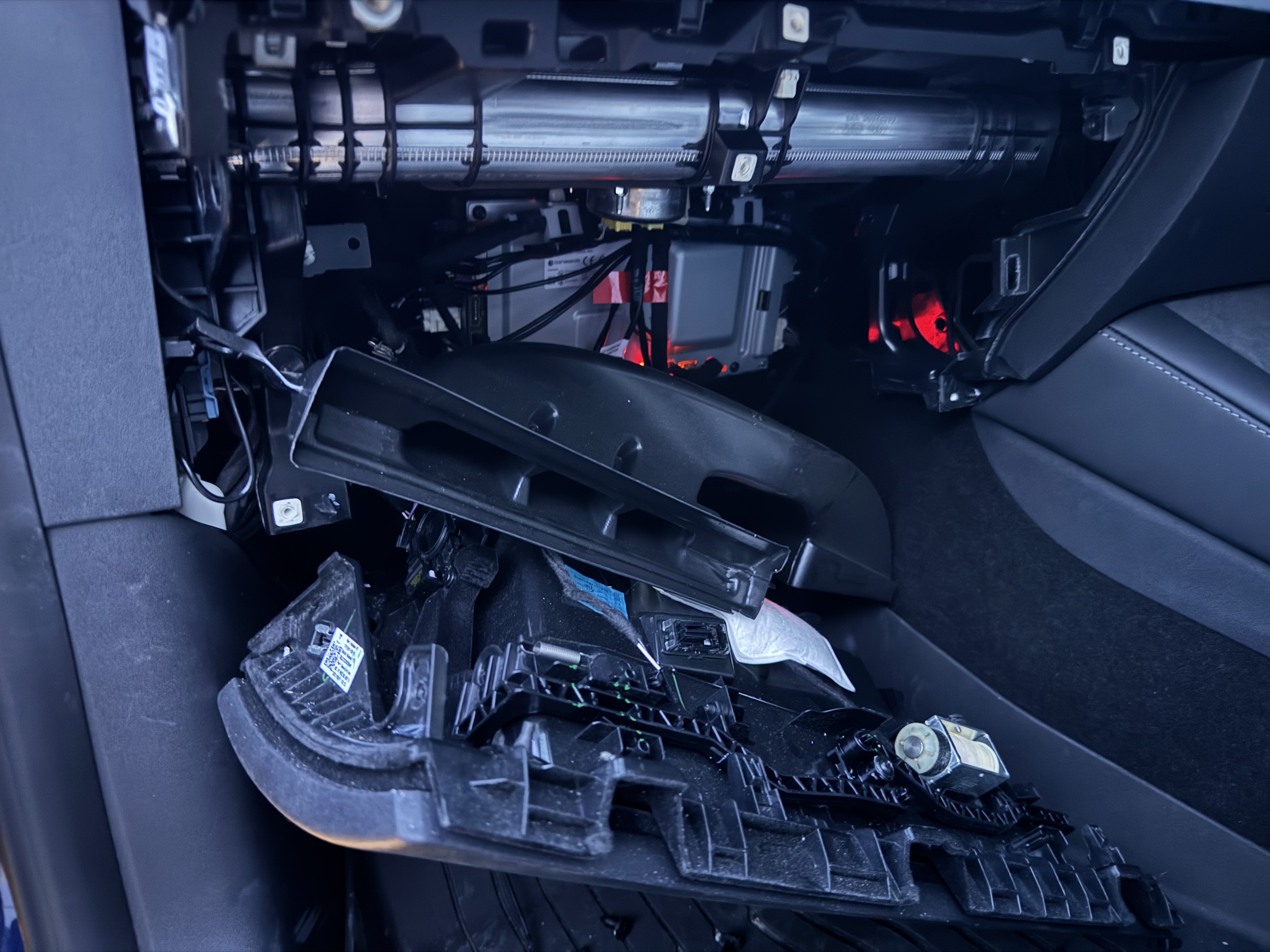 いま、グローブボックスの脱着などの追加の手順を調べています。ワイヤレスチャージャーを外したほうが手が入る気がしてたり。誰か、いい方法があったら教えてください!!