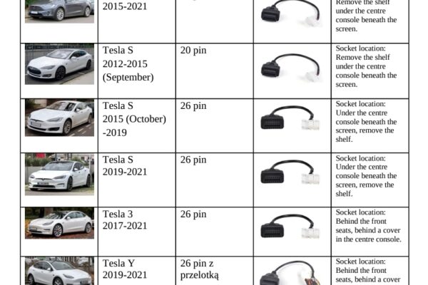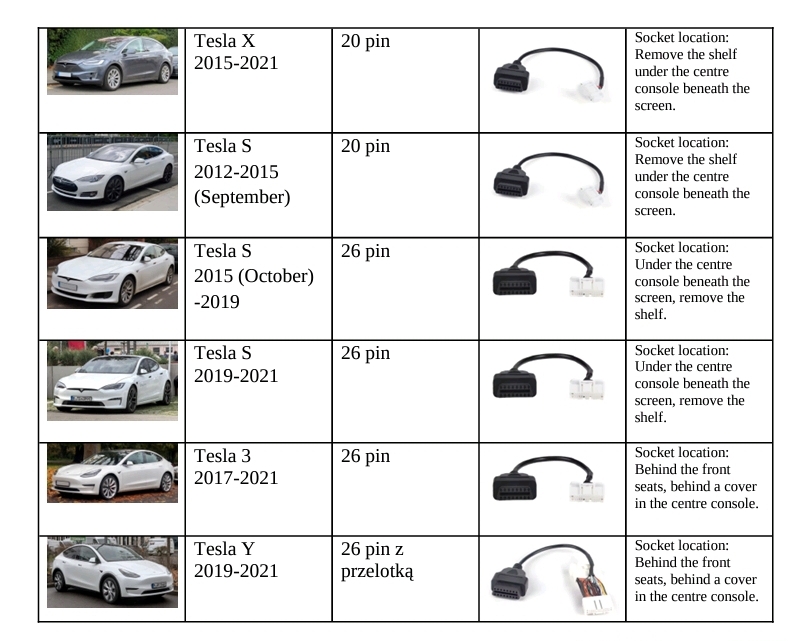 Model 3 (2019)では右ハンドルでも運転席の右側あたりに端子がありました。取り付けにはトルクスドライバーT20と内装はがしが必要です。上記画像では26pinとなっていますが、実際は6pinです。後部座席のエアコン吹出口の下は、端子が違うため取り付けできませんでした。