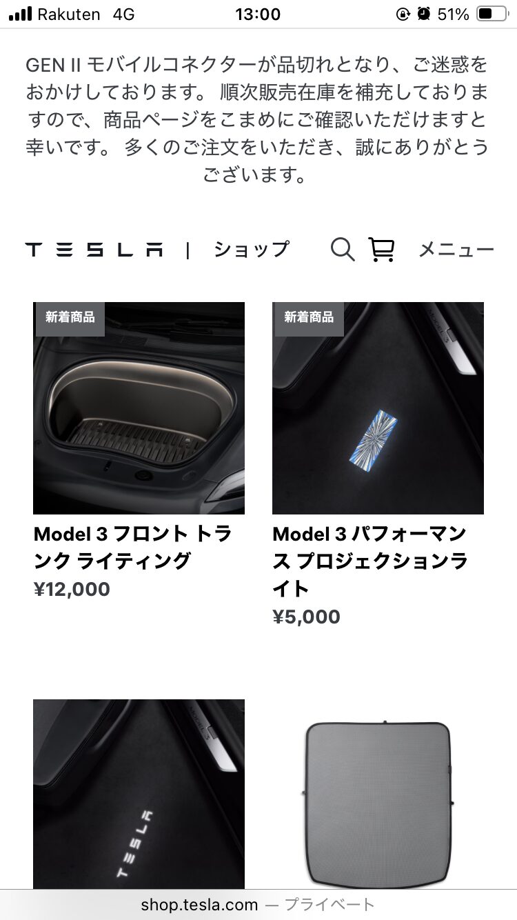 ちなみにですがオンラインショップの在庫をテスラカスタマーへ問い合わせしたところ
