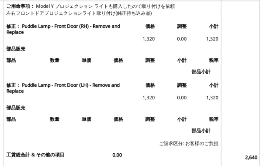 在庫になったら購入予定ですが、テスラ公式のサービスセンターで取り付け依頼した場合は工賃どれくらいになるかご存知でしょうか??