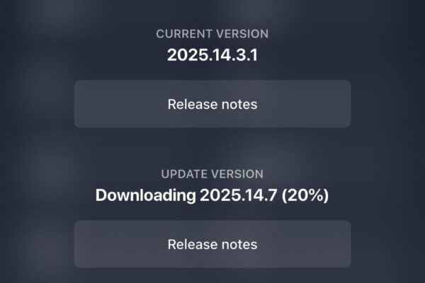 2025.14.3.1からアップデートしていますが、なかなかダウンロードが(いつも通り)進みません…
