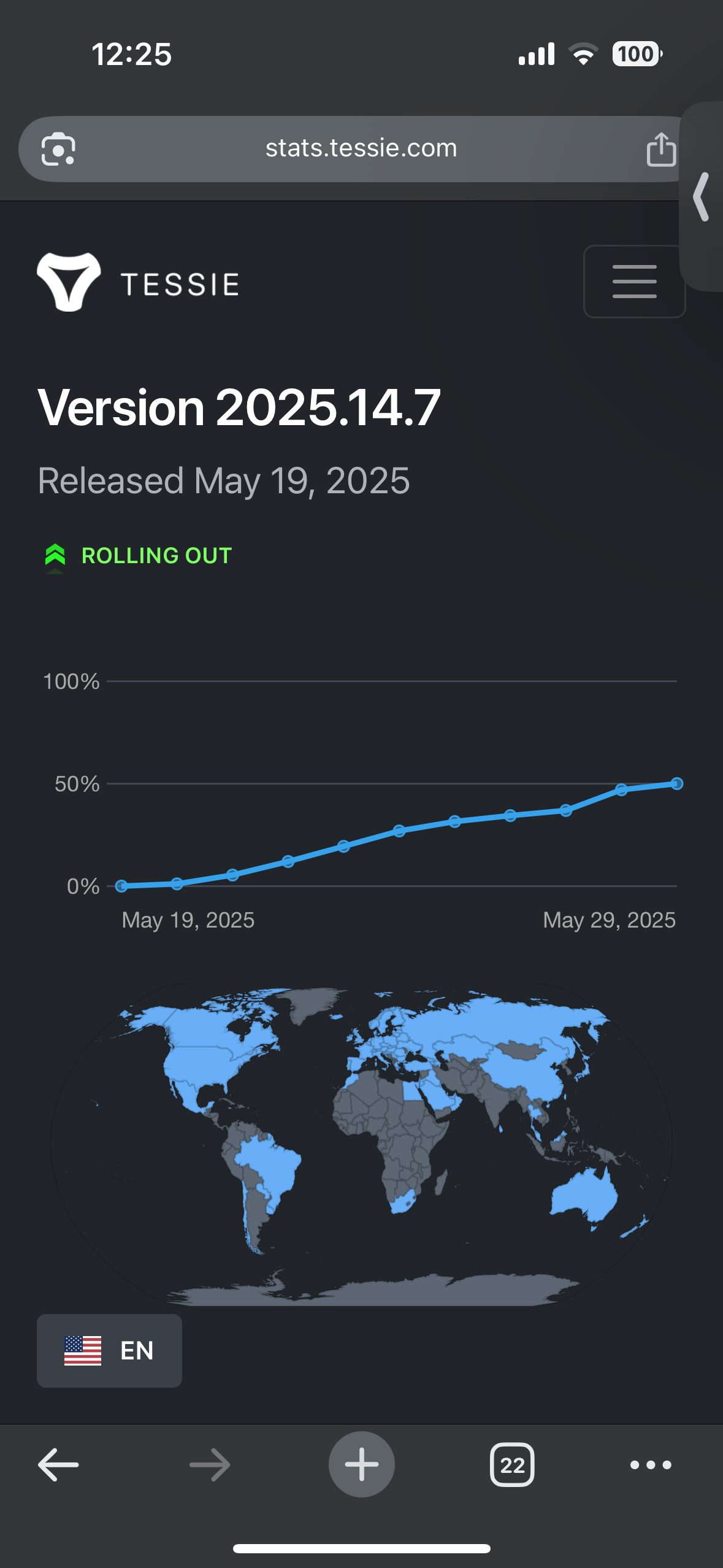 tessieのデータによると、2025.14.7は約50%の車両に配信済みのようなのでどんどん進みそうですね!