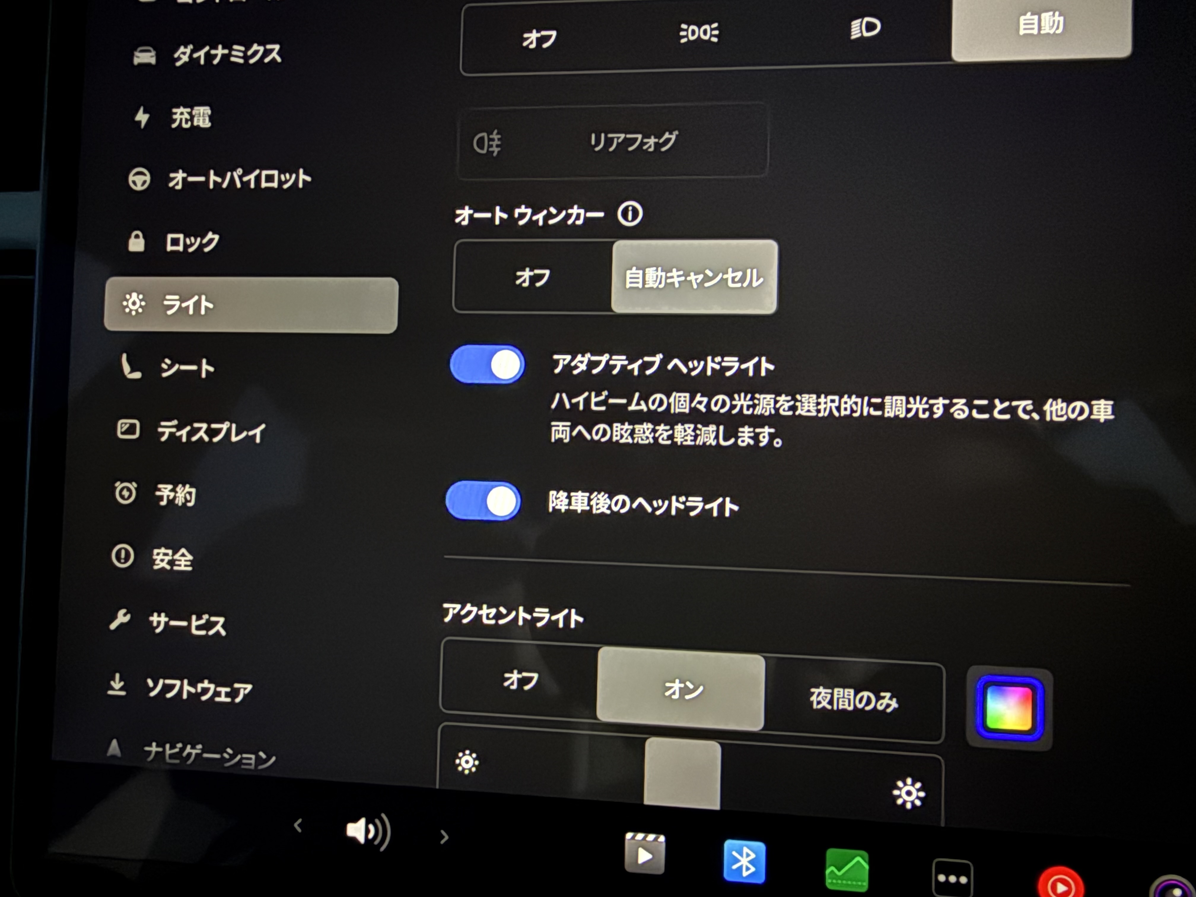 アップデートダウンロード前の状態ですが、アダプティブヘッドライトでした。