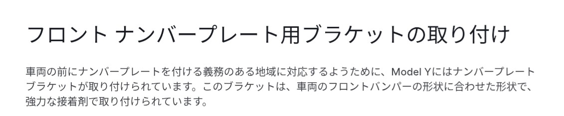 穴がバカになるとタッピングビスが効かなくなりますので!モデルYのオーナーズマニュアルを見る限り、モデルYのナンバープレート用ブラケットはネジ止めではなく接着のようです。ネジ止め式より外したり元に戻したりするのが面倒そうです。