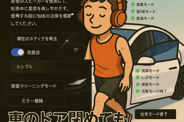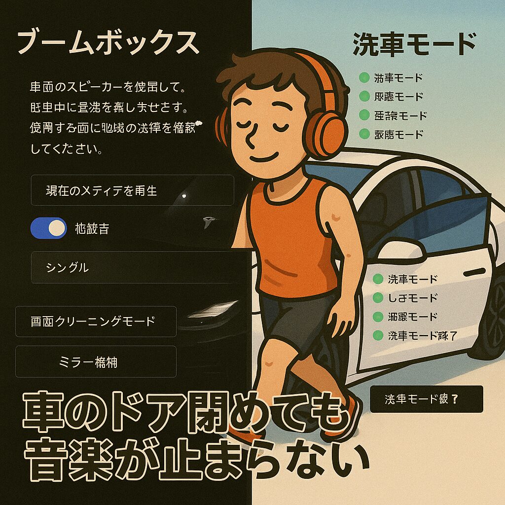 テスラの裏技・裏コマンド(ブームボックスなど) 2025.06.07 トップ › トップ › 雑談 › テスラの裏技・裏コマンド(ブームボックスなど) このトピックには4件の返信、2人の参加者があり、最後にたてやにより6ヶ月前に更新されました。 5件の投稿を表示中 - 1 - 5件目 (全5件中) 投稿者 投稿 2025年6月7日 00:20 #88187 返信 kko テスラ紹介コード: https://ts.la車: M3LR 今日洗車中に気づきました。 現在のメディアを再生する機能(ブームボックス)について、 ドアを閉めると、画面が暗くなり同時音声も止まってしまい、外から聞けませんよね?? そんなときは、洗車モードにしてからブームボックスで再生し、ドアを閉めて見てください。 画面は暗転せず音楽もなり続けます。 Attachments: 2025年6月7日 00:38 #88189 返信 kko テスラ紹介コード: https://ts.la車: M3LR 他にも裏技知っている方がいれば、コメントお願いします!豆知識でもなんでも大丈夫です! ちなみに、洗車モードを使えば、車内が無人でも、ドアを閉めて画面が暗転しないので それを利用して他にも色々なことができるかもしれません。 (例えば、)洗車モードにしてドアを閉め、アプリから音楽再生、車の音漏れ具合を計測など… この機能を知るまでは、窓を全開にしドアをしめ、外からタブレットを触ることで暗転防止していました。 2025年6月7日 12:10 #88197 返信 tkp キャンプモードでの同様の動作はちょっと違いますか、、、? 2025年6月7日 14:13 #88199 返信 テスカス 車: Model 3 LongRange 2019 ここに結構載ってるのでご参考 モデル3のTips集【小技、裏技】 https://teskas.net/forums/topic/22321/ 2025年6月7日 23:42 #88218 返信 たてや イコライザーで低音最大にしてサブウーファーも最大まで上げてさらに上げようとすると数値の部分がBRRRRとかBOOSTとかBOOOMとか変わるのを先日初めて知りました 投稿者 投稿 5件の投稿を表示中 - 1 - 5件目 (全5件中) 返信先: テスラの裏技・裏コマンド(ブームボックスなど) あなたの情報: お名前 (必須) メール (非公開) (必須): ウェブサイト: 以下の HTML タグと属性を使用できます。 <a href="" title="" rel="" target=""> <blockquote cite=""> <code> <pre class=""> <em> <strong> <del datetime="" cite=""> <ins datetime="" cite=""> <ul> <ol start=""> <li> <img src="" border="" alt="" height="" width=""> 送信中.... 送信