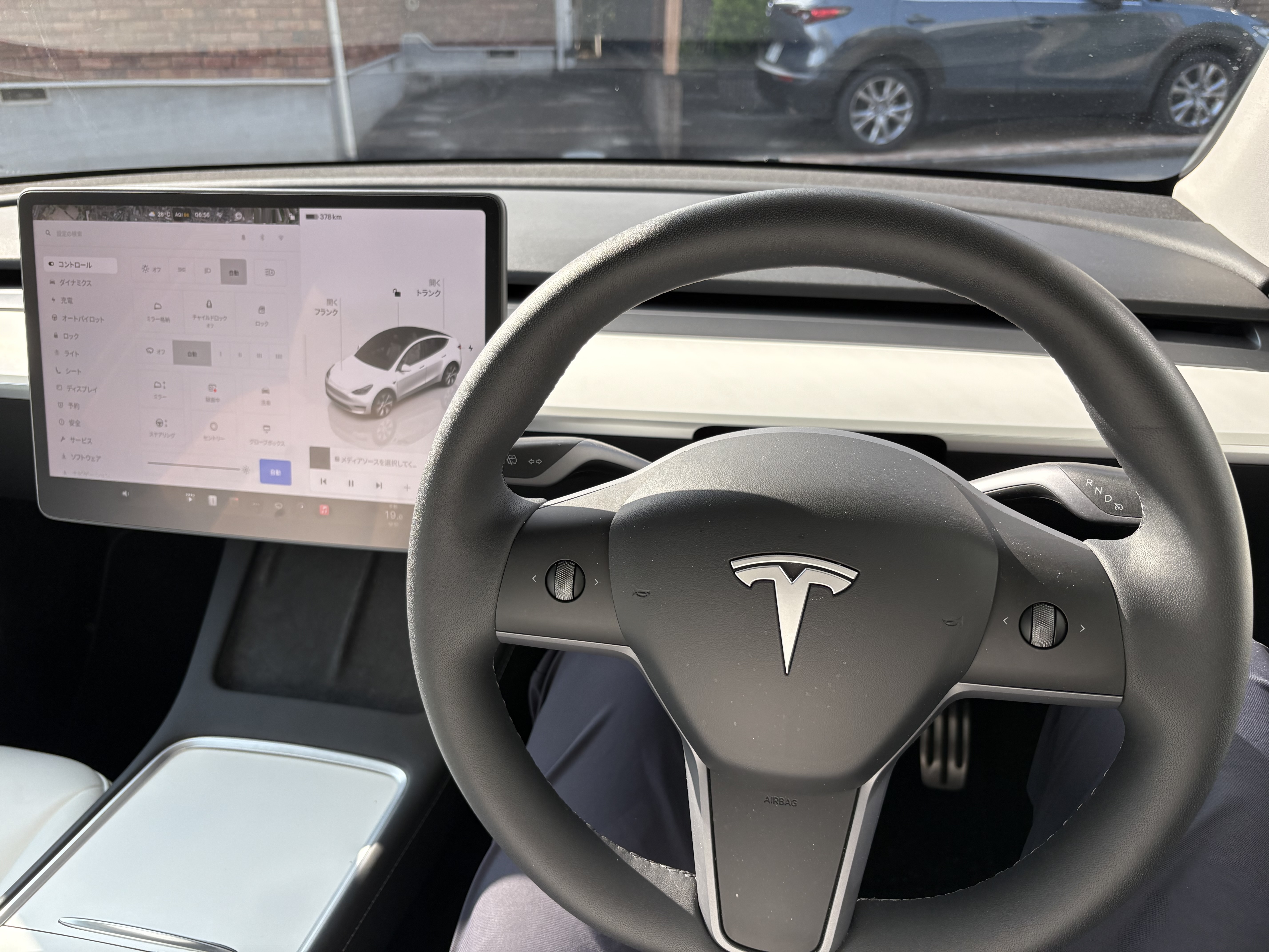 テスラ乗り換え3台目で刺激が足らなくなっていたところ、テスラらしいハンドルにテンション上がったのが一番。見晴らしが良くて気に入りました。