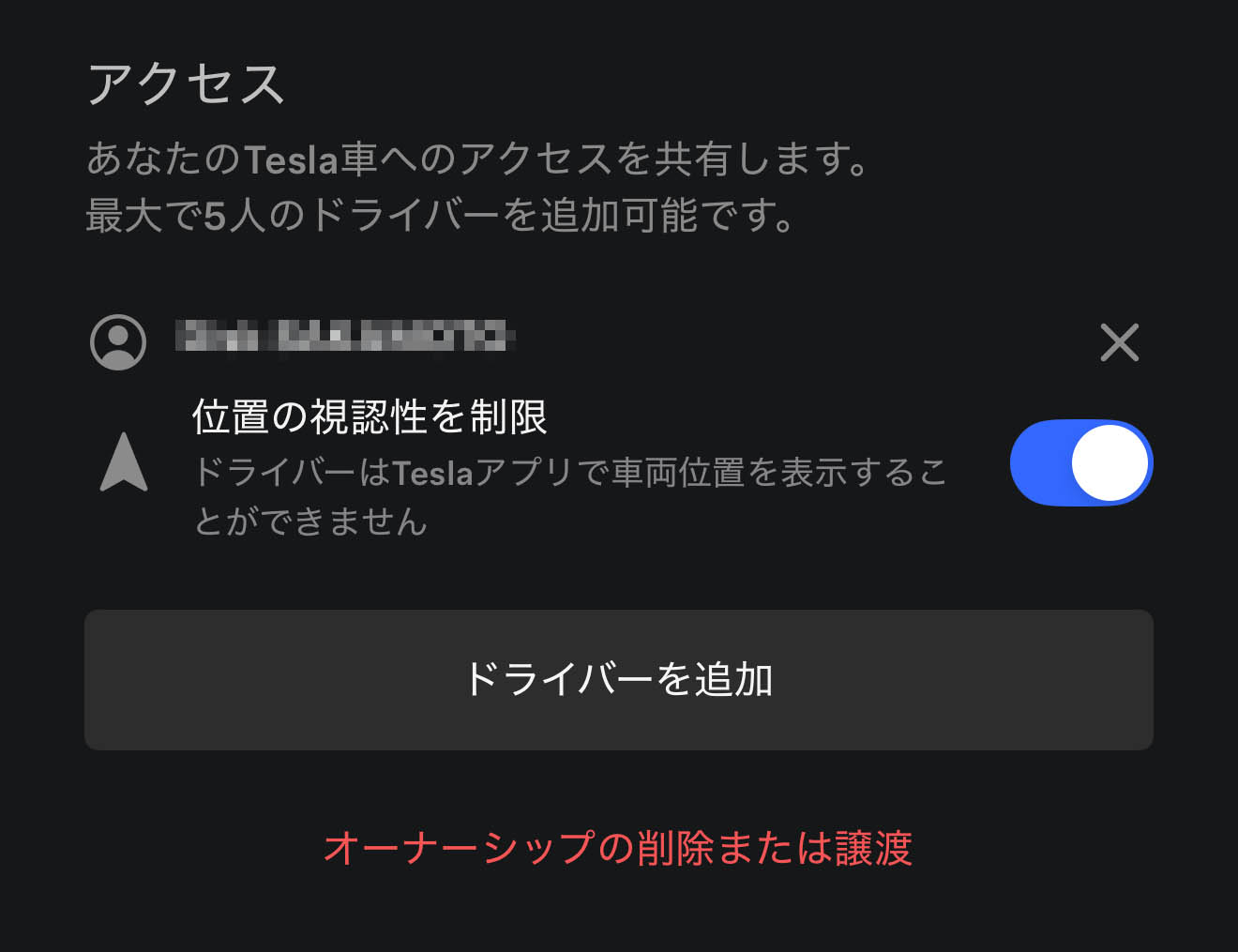 テスラマップ上でモバイルキーを持っている家族にはわからないってことで いいです?