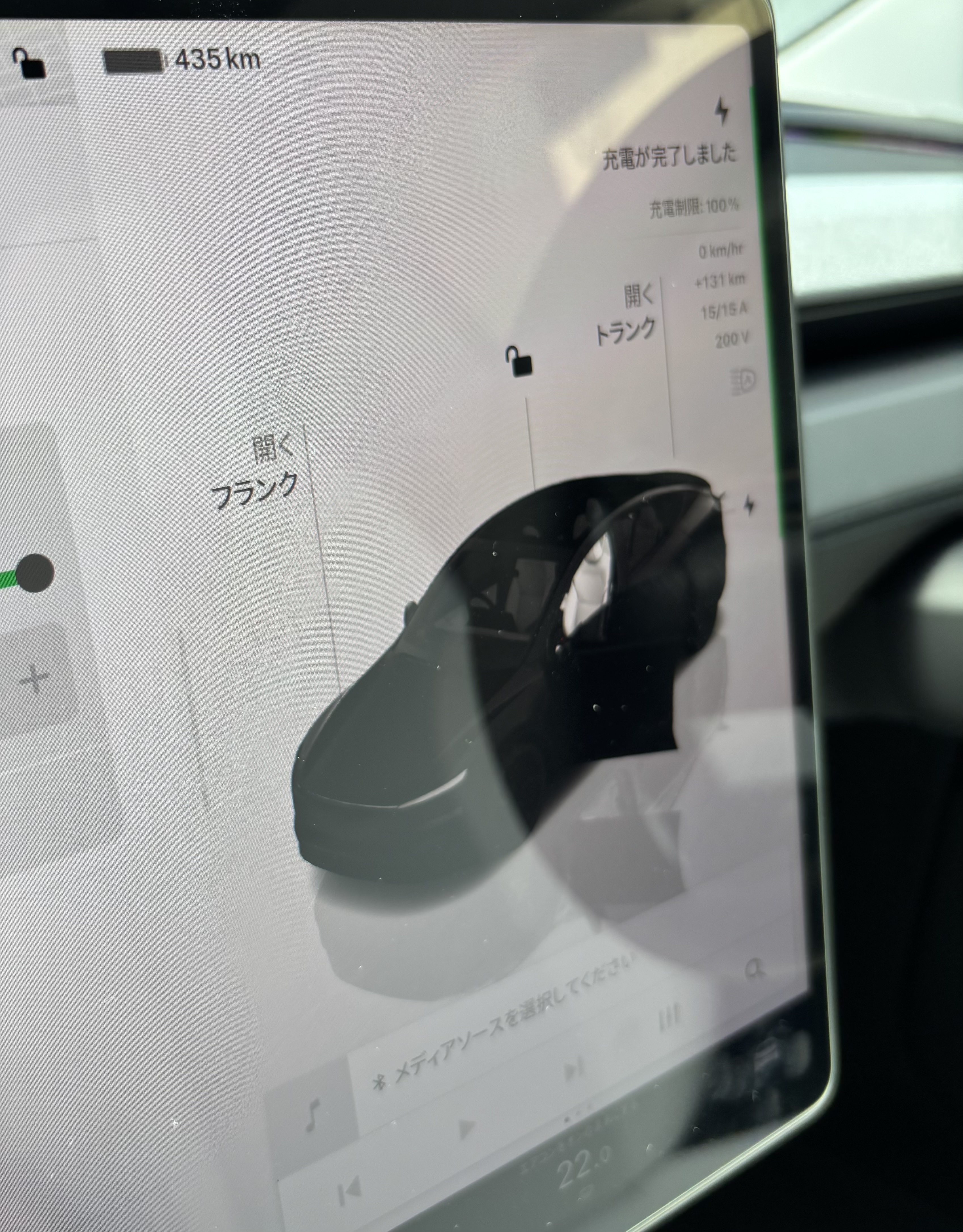 直近の使い方やその日の気温で航続距離は微妙に変わります。RWDはLFPバッテリーですが、毎日満充電は推奨されていませんのでそこはご注意ください。劣化が早まります。週に1回程度、満充電にするのがおすすめです。