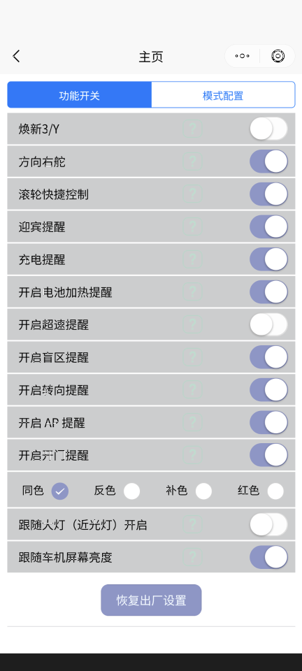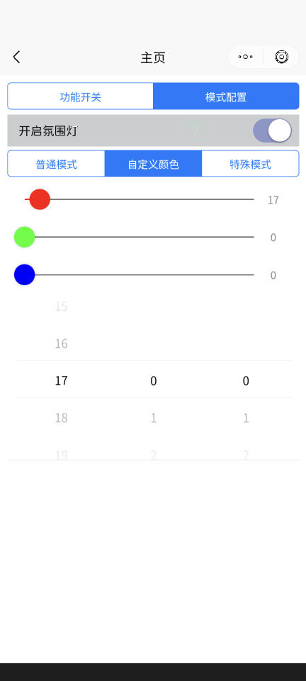 上の「开启氛围灯」でアンビエントライトの ON/OFF を選択できます。