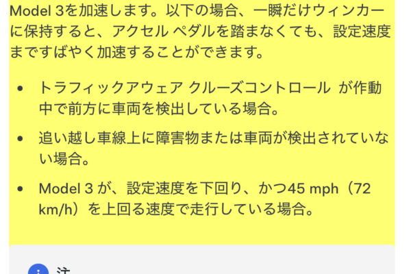 そこで、マニュアルを見ていると『追い越し加速』という機能があることを発見しました。