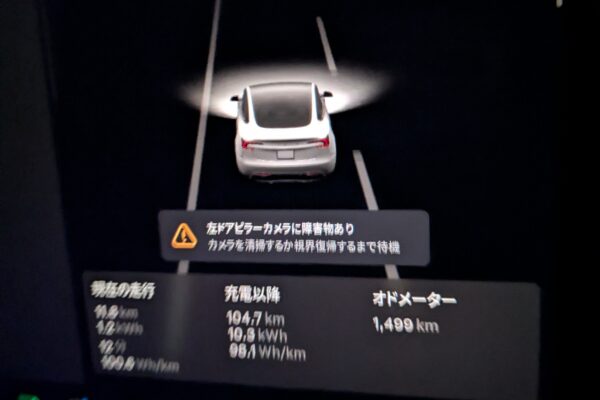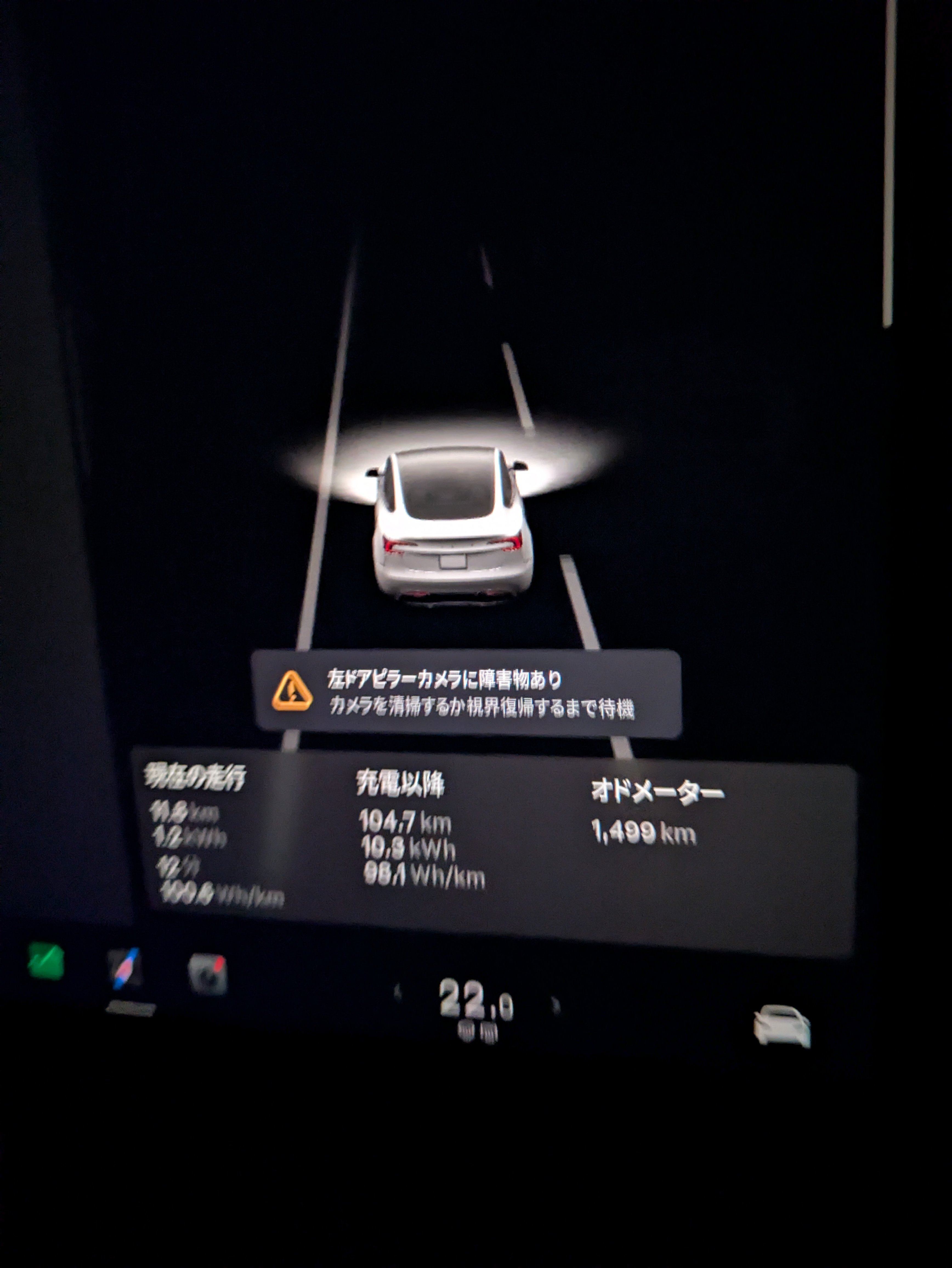 夜間走行時に、左側ピラーカメラの不具合(認識できない、要清掃のメッセージあり)が頻発しています。20分の夜間走行で数回のエラーメッセージが出ます。