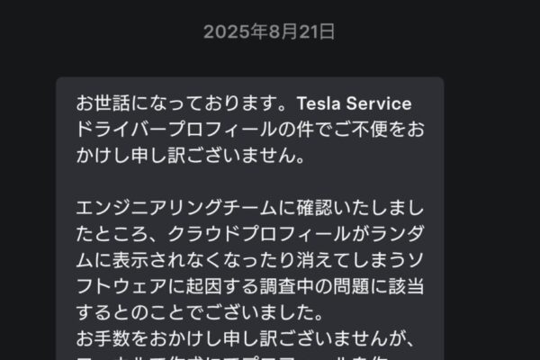クラウド同期されているプロフィールがダメになるみたいなのでテスラアカウントと紐づけていないプロフィールをローカルでひとつ作っておくと消えた時にも設定の「既存のプロフィールからコピー」を使ってすぐに復元できるので、ログインとか全部し直す必要があって面倒ですがバックアップ用にひとつローカルアカウントを同じ設定で作っておくと良いと思います!