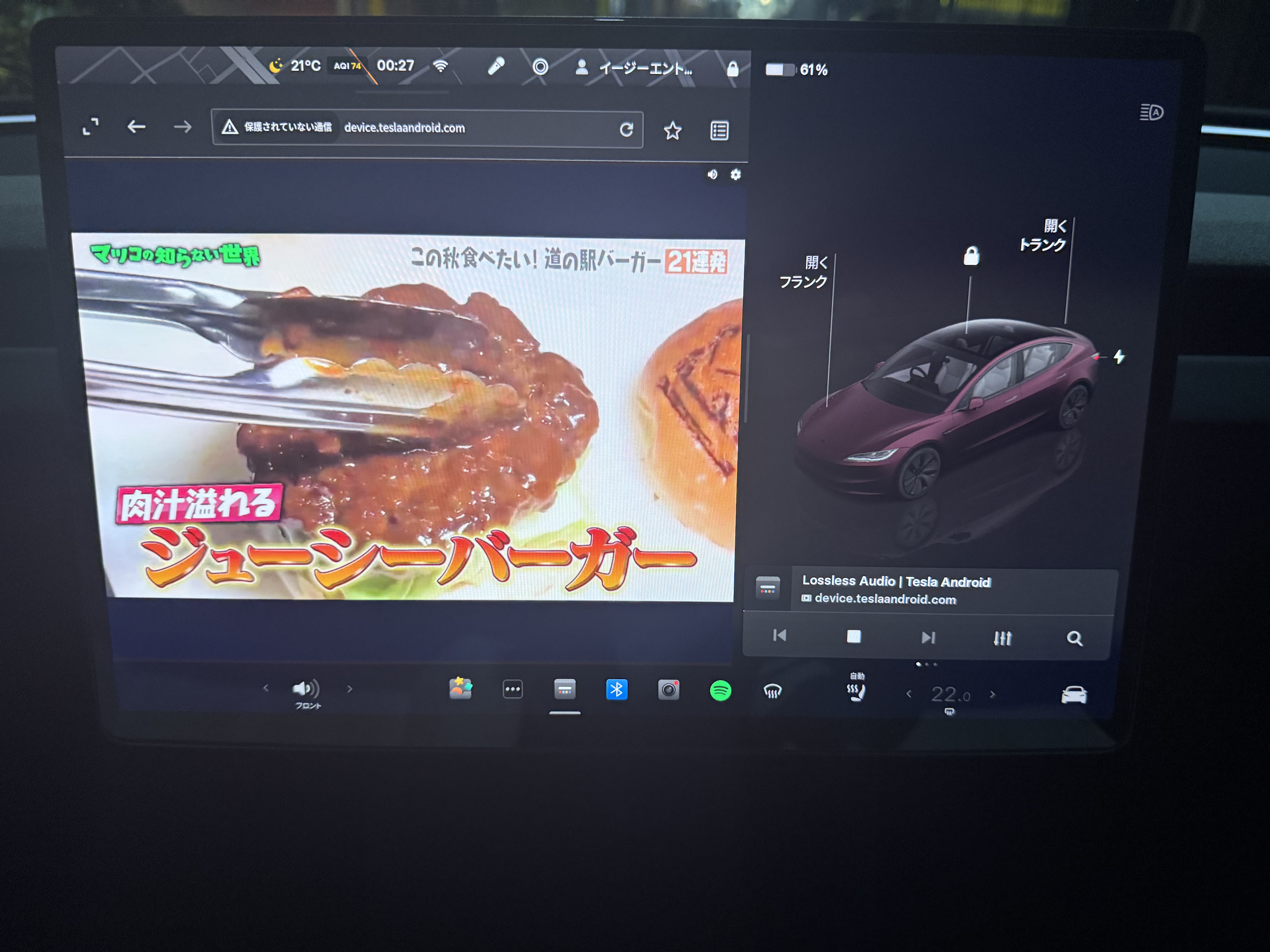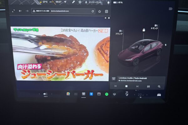 運転中でもブラウザの画面と音声は正常に出力されるため、Tesla Androidは問題なく動作します。