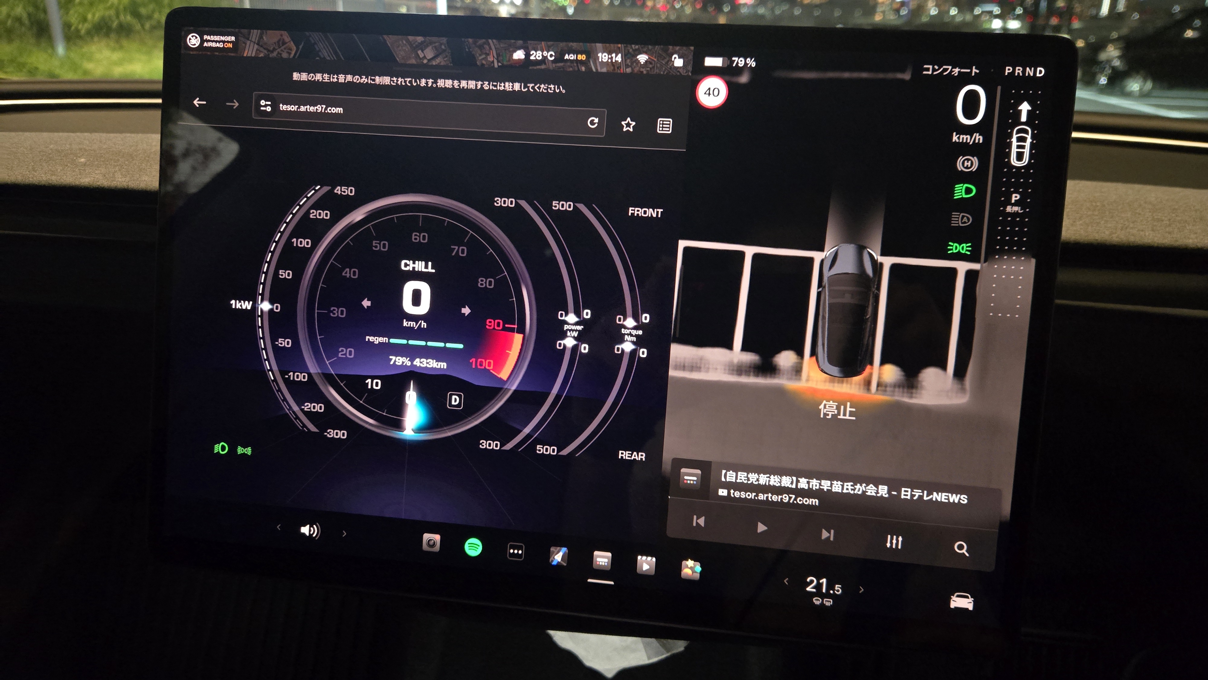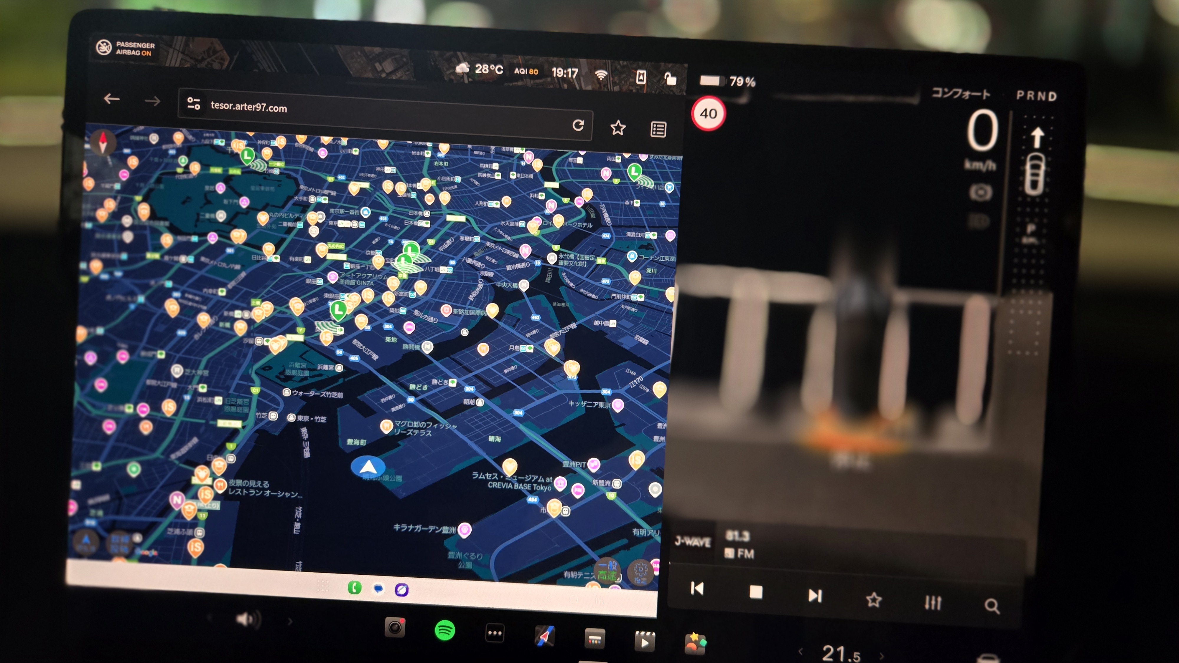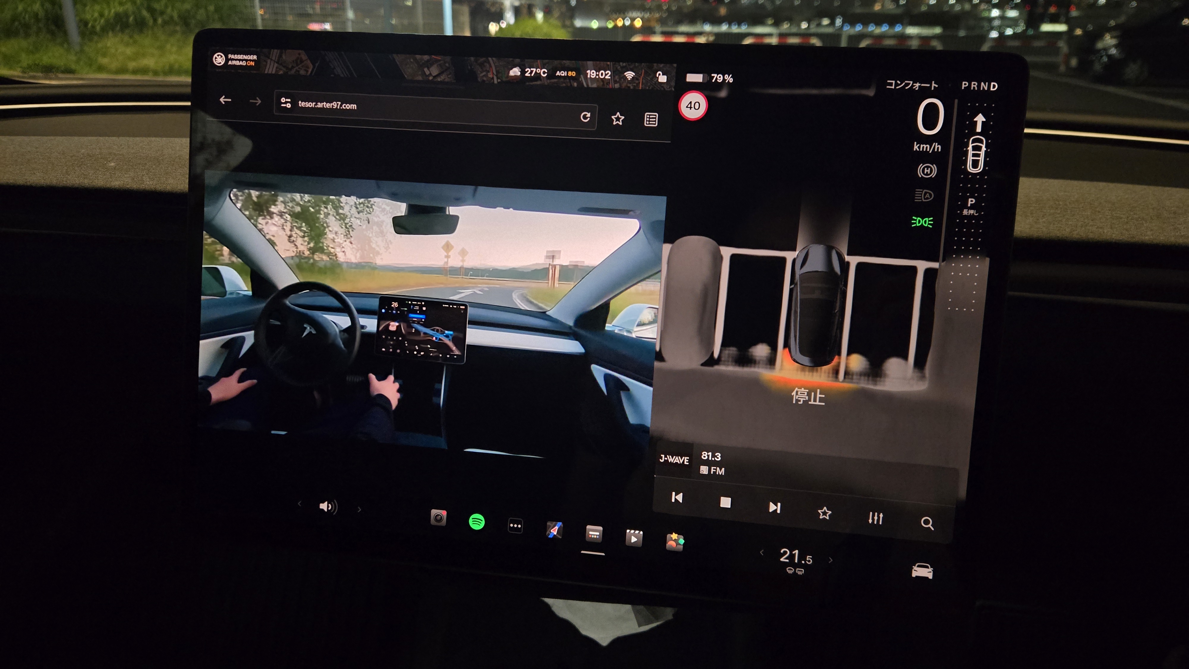 音量ボタンを押すだけでアプリがテスラのブラウザに入ってしかも画面サイズもブラウザに合わせるところは最高です。