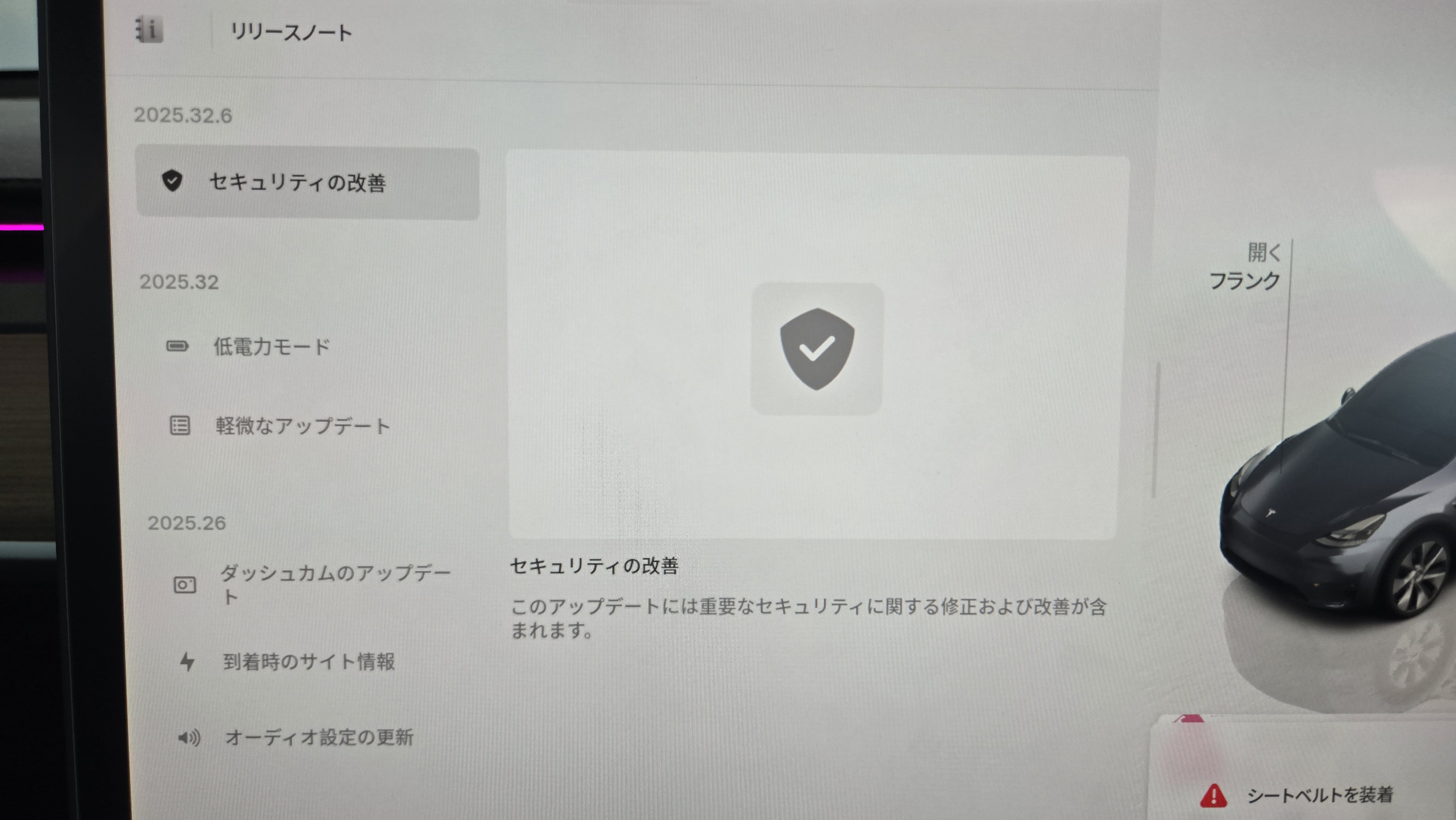 モデルY 2025 ジュニパーにアップデートが来ていました。