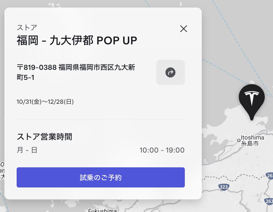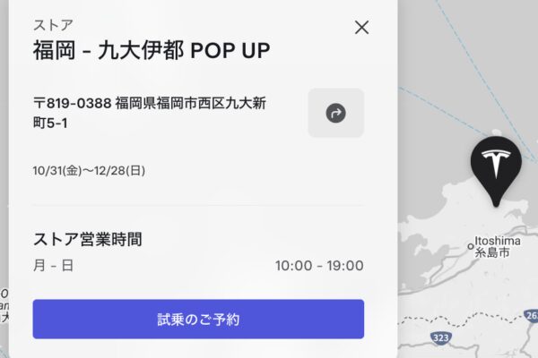 テスラのポップアップがオープンするんですね。いつも最新情報をありがとうございます!