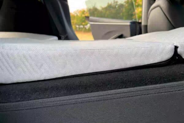 後部座席の頂点とトランク底との差がおよそ20cmあり、いちばん高い位置(後部座席の頂点)に合わせるようにすると、寝返りが厳しいレベルで足元側が窮屈になってしまいました。