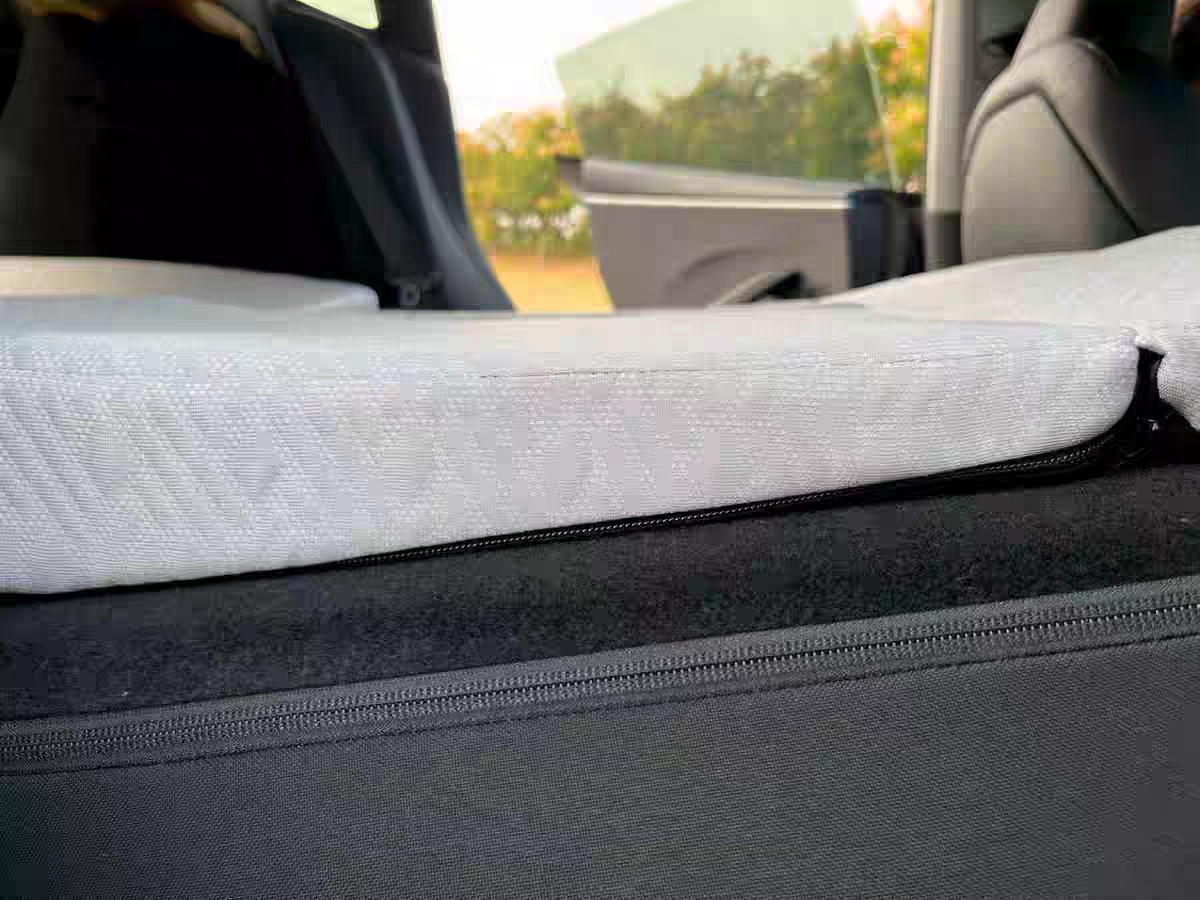 後部座席の頂点とトランク底との差がおよそ20cmあり、いちばん高い位置(後部座席の頂点)に合わせるようにすると、寝返りが厳しいレベルで足元側が窮屈になってしまいました。