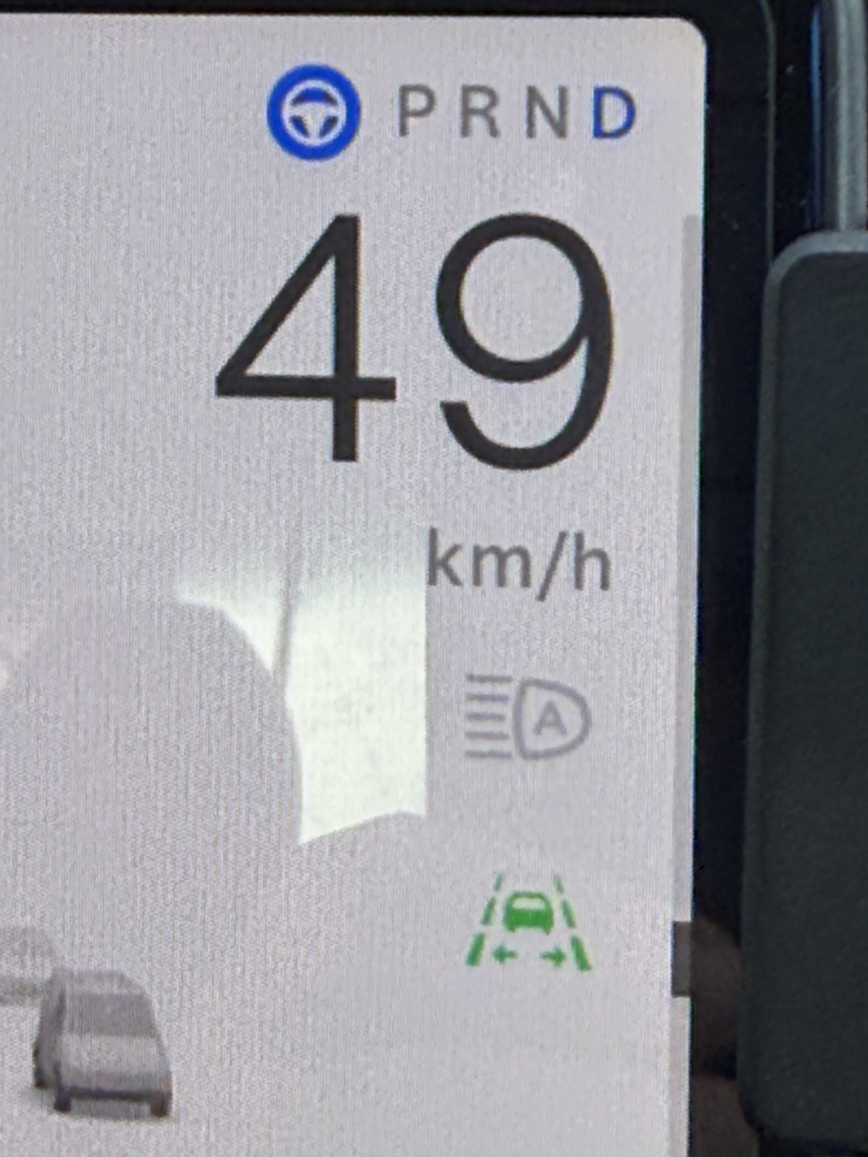 APがオンの状態の時に、指示器を出すと隣の車線が青くなって移れるのですが、そもそも隣の車線が青くなる時とならない時があります。モニターの右端に緑色のアイコンが点灯している時は指示器を出せば自動で移れます。 交差点などに近づくとこのアイコンがグレーになります。