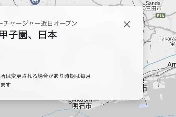 甲子園にスーパーチャージャーが出来るようです。 2025.11.27 トップ › トップ › 充電 › 甲子園にスーパーチャージャーが出来るようです。 このトピックには5件の返信、2人の参加者があり、最後にコシカワにより2日、 18時間前に更新されました。 6件の投稿を表示中 - 1 - 6件目 (全6件中) 投稿者 投稿 2025年11月27日 06:43 #97048 返信 くまねこ テスラ紹介コード: https://www.tesla.com/referral/yoshitaro463313車: MODELY LR(2023) 阪神高速3号線の近くに出来るみたいですね。 Attachments: 2025年11月29日 11:06 #97135 返信 HMP Google Mapsで見るとららぽーと甲子園ですかねえ 2025年11月29日 15:31 #97147 返信 コシカワ テスラ紹介コード: https://ts.la/shinichi30010 甲子園方面はスーパーチャージャー不毛地帯ではないので、手薄な八尾、藤井寺方面に欲しいところです。大阪は道が狭い&混雑が激しいので、短距離の移動でも時間がかかるので、人工密度に合わせた設置??ではなく、もう少しまんべんなく配置できないものかなといつも思います。 2025年11月29日 16:47 #97149 返信 fuzz 千里中央あたりに欲しい 2025年11月29日 18:07 #97159 返信 コシカワ テスラ紹介コード: https://ts.la/shinichi30010 余談ですが、名阪の伊賀スーパーチャージャーはよく使いますが、日曜日はホテルのイベント??で一般車で埋まることがあるので、実質的に使用不可となることがあるため、ギリギリで到着すると詰みます 笑 2025年12月2日 18:46 #97311 返信 コシカワ テスラ紹介コード: https://ts.la/shinichi30010 #97159 今、伊賀でチャージしましたが、 カラーコーンがありました。 やはり、クレームが入ったんでしょうね。 投稿者 投稿 6件の投稿を表示中 - 1 - 6件目 (全6件中) 返信先: 甲子園にスーパーチャージャーが出来るようです。 あなたの情報: お名前 (必須) メール (非公開) (必須): ウェブサイト: 以下の HTML タグと属性を使用できます。 <a href="" title="" rel="" target=""> <blockquote cite=""> <code> <pre class=""> <em> <strong> <del datetime="" cite=""> <ins datetime="" cite=""> <ul> <ol start=""> <li> <img src="" border="" alt="" height="" width=""> 送信中.... 送信