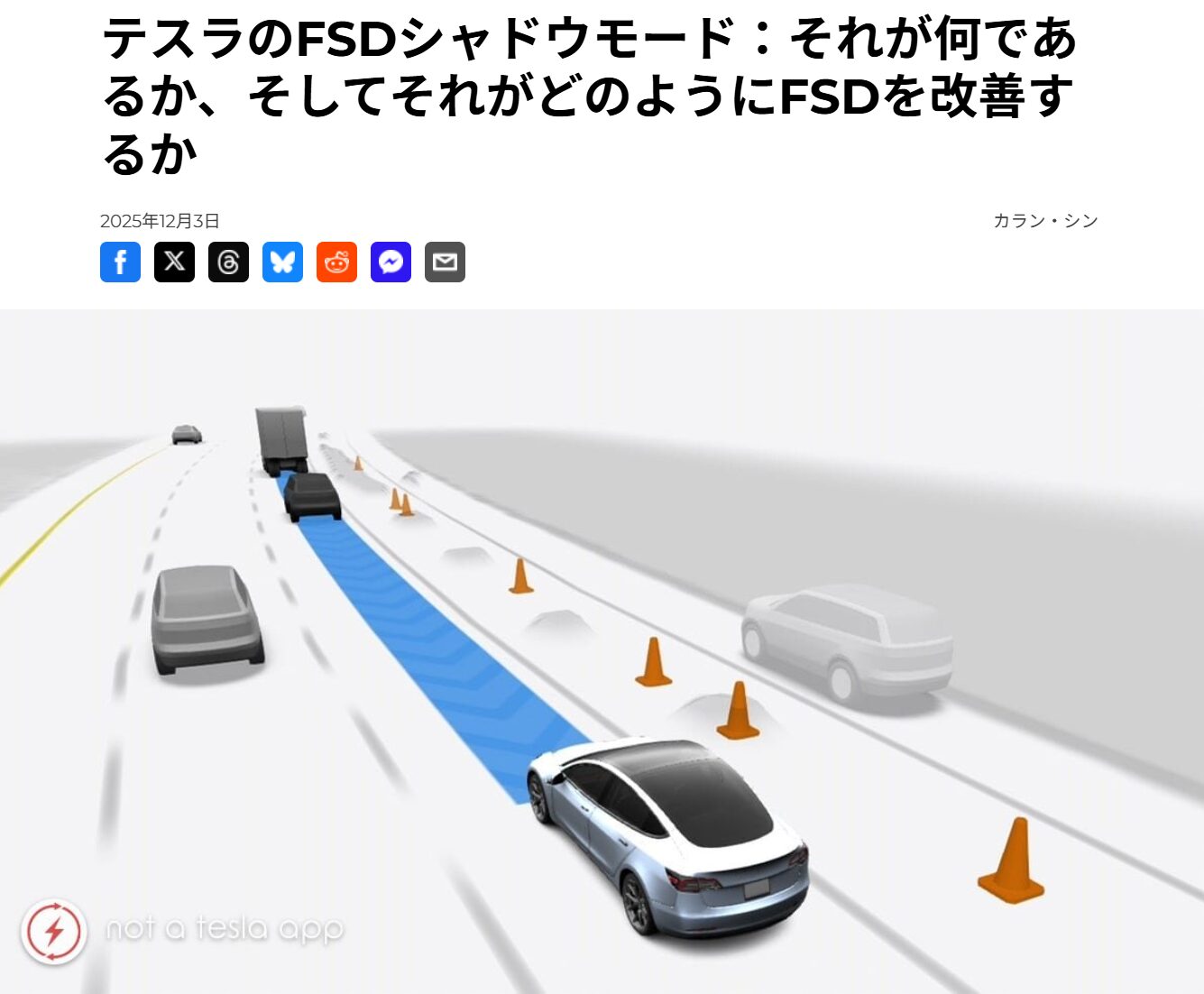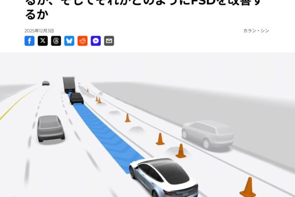 FSDのシャドウモードについての記事紹介 2025.12.04 トップ › トップ › 雑談 › FSDのシャドウモードについての記事紹介 このトピックには4件の返信、2人の参加者があり、最後にIboughtELONにより1日、 1時間前に更新されました。 5件の投稿を表示中 - 1 - 5件目 (全5件中) 投稿者 投稿 2025年12月4日 10:36 #97389 返信 IboughtELON 車: M3RWD2025FSD 「テスラのFSDシャドウモード:それが何であるか、そしてそれがどのようにFSDを改善するか」という記事が分かりやすかったので紹介します。 ともかく私たちがテスラで走り続ければ裏でFSDが進化するという話 https://www.notateslaapp.com/news/3108/teslas-fsd-shadow-mode-what-it-is-and-how-it-improves-fsd (ブラウザで日本語翻訳表示にすると読みやすいです) Attachments: 2025年12月4日 14:05 #97400 返信 kokik テスラ紹介コード: http://ts.la/koki97867 灰色の触手(FSD’s grey tentacle)、私は見たことがないんですけど、どんなアイコンですか? 2025年12月4日 14:42 #97401 返信 IboughtELON 車: M3RWD2025FSD アイコンではなくて、どうもこういうことらしいです。(byチャッピー) テスラビジョンに出てくる輪郭みたいな。 Attachments: 2025年12月4日 14:50 #97403 返信 kokik テスラ紹介コード: http://ts.la/koki97867 #97401 なかなか触手には見えませんけど、そうなんですね。今度注意してみてみます。 2025年12月4日 15:13 #97404 返信 IboughtELON 車: M3RWD2025FSD #97403 tentacleを触手って読んじゃうとなんか違うのでしょうね。たぶん黄色で囲んだこの灰色の線やオブジェクトを指しているものと思います。 Attachments: 投稿者 投稿 5件の投稿を表示中 - 1 - 5件目 (全5件中) 返信先: FSDのシャドウモードについての記事紹介で#97404に返信 あなたの情報: お名前 (必須) メール (非公開) (必須): ウェブサイト: 以下の HTML タグと属性を使用できます。 <a href="" title="" rel="" target=""> <blockquote cite=""> <code> <pre class=""> <em> <strong> <del datetime="" cite=""> <ins datetime="" cite=""> <ul> <ol start=""> <li> <img src="" border="" alt="" height="" width=""> 送信中.... 送信