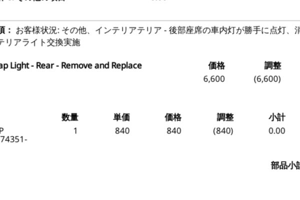 今日、家族と食事に行こうと乗り込んだら、問題の助手席側後部のマップライトが点灯していません。