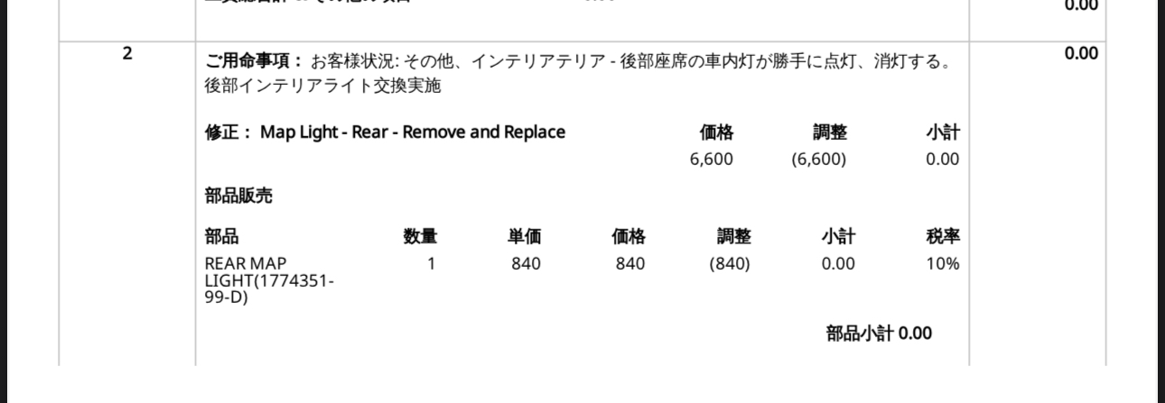 今日、家族と食事に行こうと乗り込んだら、問題の助手席側後部のマップライトが点灯していません。